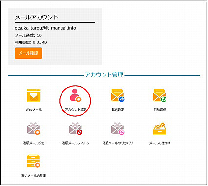 step 1 利用者メニューを表示し、「アカウント設定」をクリックします。