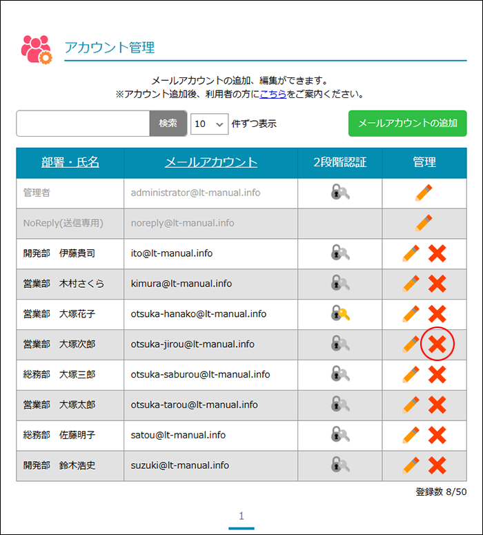 step 1 アカウント管理画面を表示し、削除するユー ザーの