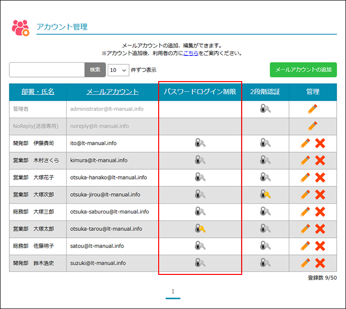 ※ アカウント管理画面の表示方法→「アカウント管理画面を表示する」