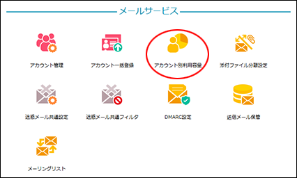 アカウント別利用容量