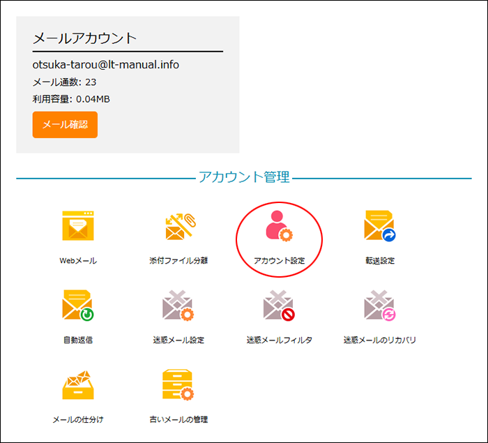 利用者メニューを表示し、「アカウント設定」 をクリックします。