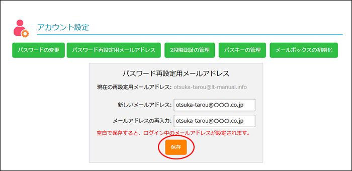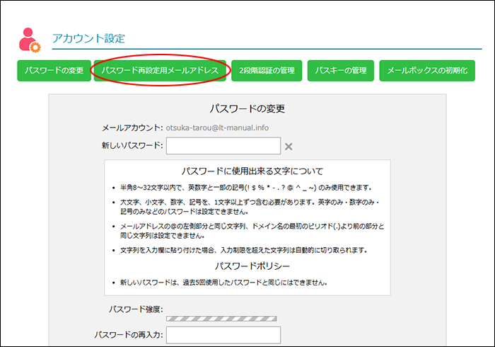 パスワード再設定用のメールアドレスを設定する