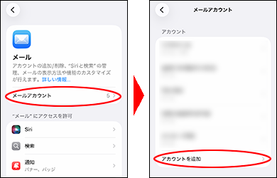 「メールアカウント」をタップし、「アカウントを追加」をタップします。