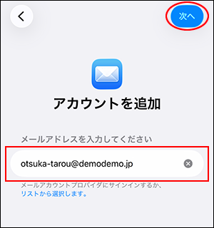 - ※画像では、入力内容によらず「otsuka-tarou@demodemo.jp」というメールアドレスの例が表示されています。