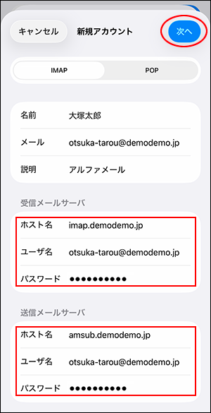 iOS 26.x(IMAP/SMTP)[初期設定]