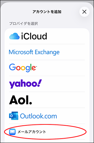 「メールアカウント」をタップします。