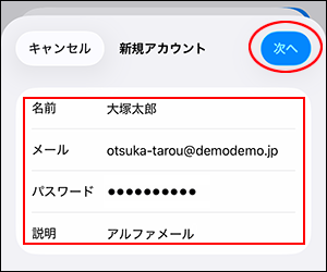 必要事項を入力し、「次へ」をタップします。