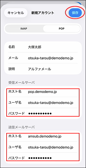 必要事項を入力し、「保存」をタップします。-