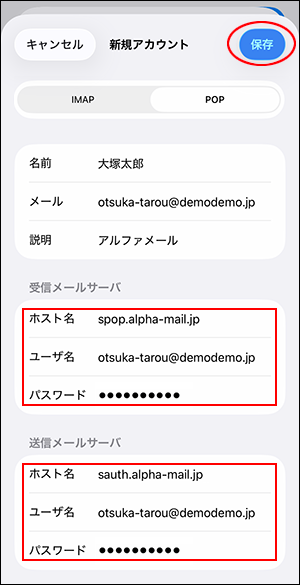 iOS 26.x(POP/SMTP)[初期設定]