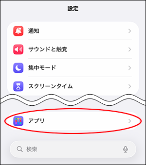 「アプリ」をタップします。