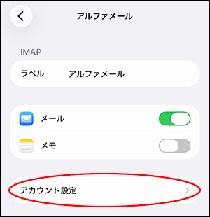 「アカウント設定」をタップします。