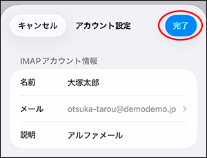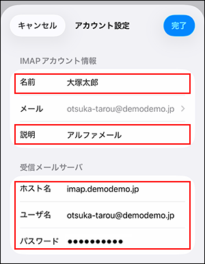 IMAPアカウント情報 名前 名前や会社名などを入力 -