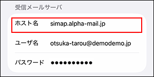 「ホスト名」に「simap.alpha-mail.jp」と入力します。
