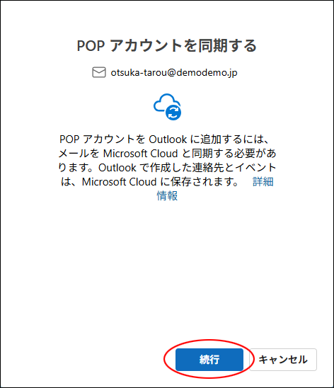 表示内容を確認し、問題がなければ「続行」ボタンをクリックします。